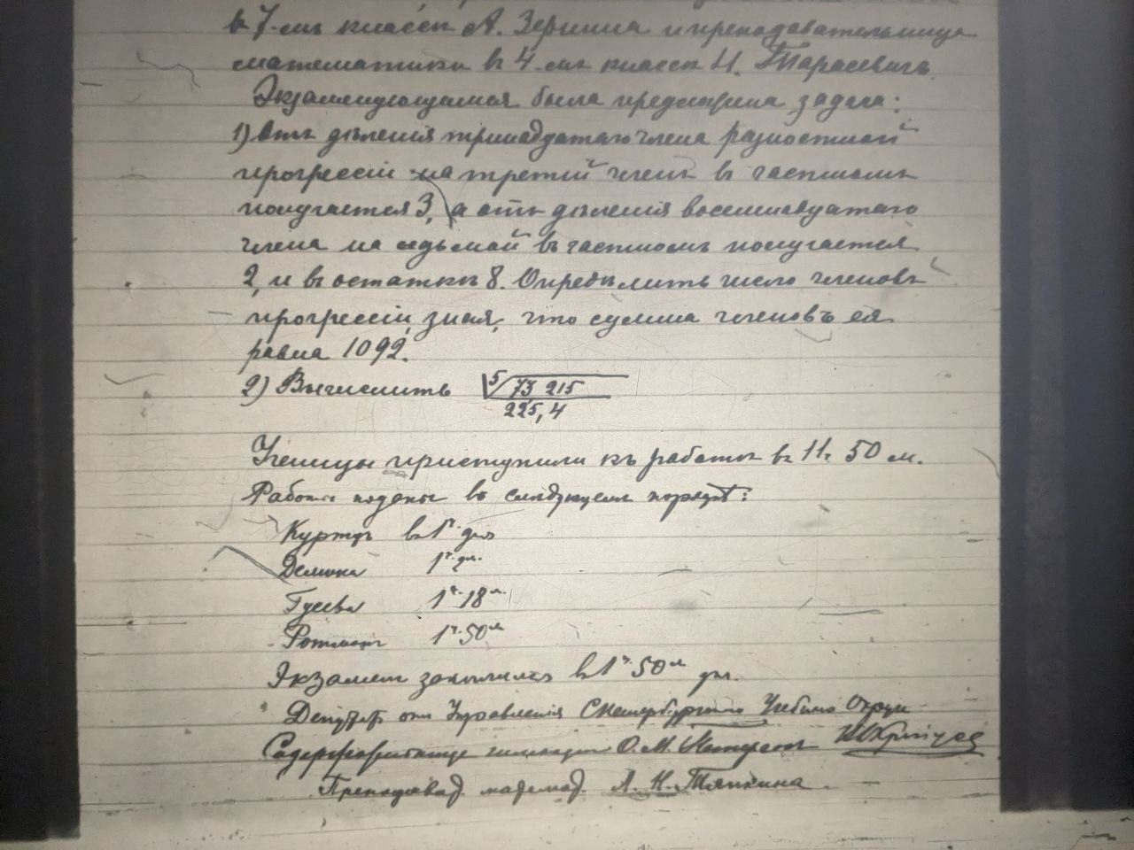 Письменное испытание 8 класса по алгебре. Санкт-Петербург, 1914, частная женская гимназия О. М. Петерсон